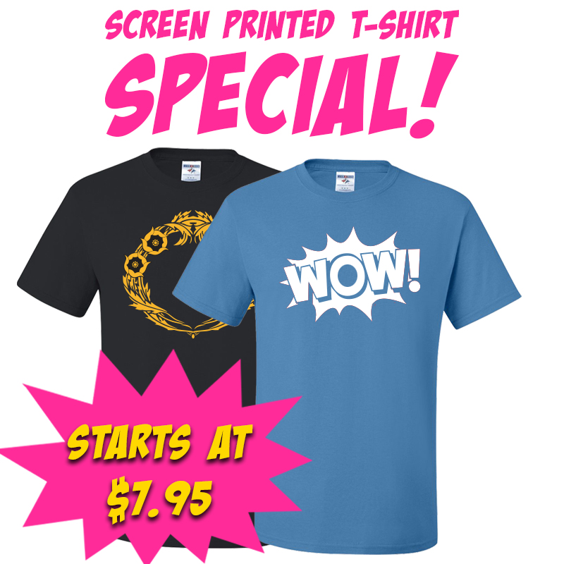Get Your One-of-a-Kind Shirt Started! Ready to turn your brilliant idea into a wearable masterpiece? Our Custom Screen Printed Tees are the perfect canvas for your unique vision! Keep it cool, classic, and high-impact with our Single Color, Single Location package.